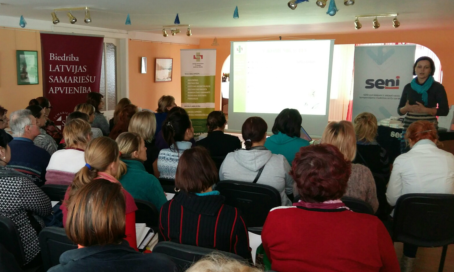 Kopā ar apvienības pārstāvjiem uz piecām Latvijas pilsētām – Jelgavu, Balviem, Kuldīgu, Madonu, Smilteni – devās Latvijas Universitātes P. Stradiņa medicīnas koledžas Sociālās aprūpes katedras lektore Ina Vīksniņa, lai semināra dalībniekus iepazīstinātu ar praktiskiem paņēmieniem un demonstrētu dažādus palīglīdzekļus aprūpes veikšanai mājas apstākļos.