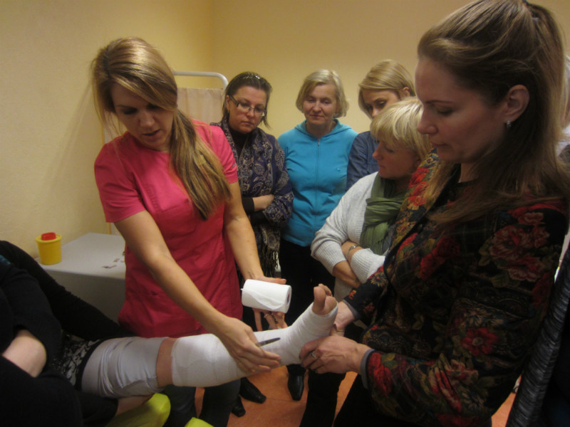 Nodarbības tēma bija "Mūsdienīga pieeja vēnu varikozas un hroniskas vēnu mazspējas terapijā". Praktiskās nodarbības laikā studējošajiem bija iespēja apgūt kompresijas saitēšanas metodi dubultās saites uzlikšanā.